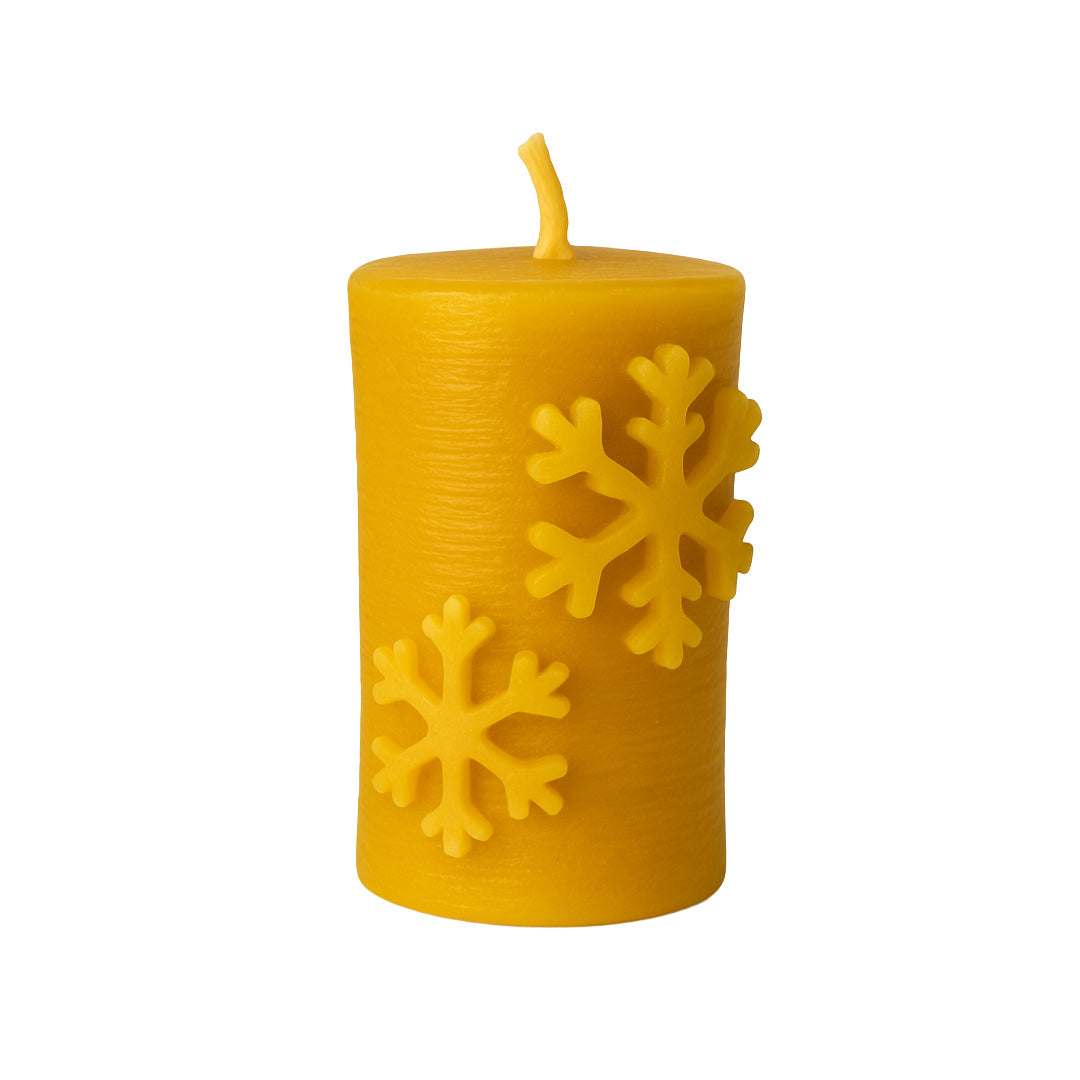 Bienenwachskerze Stumpen Kerze mit Schneeflocken